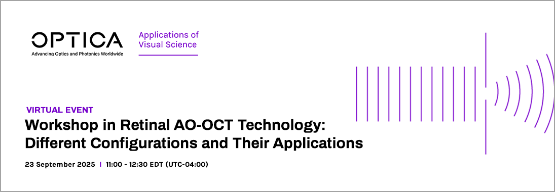 The Optica Applications of Visual Science Technical Group invites you to register for their webinar, ‘Workshop in retinal AO-OCT technology: different configurations and their applications’, on 23rd September, EDT 11.00-12.30.
